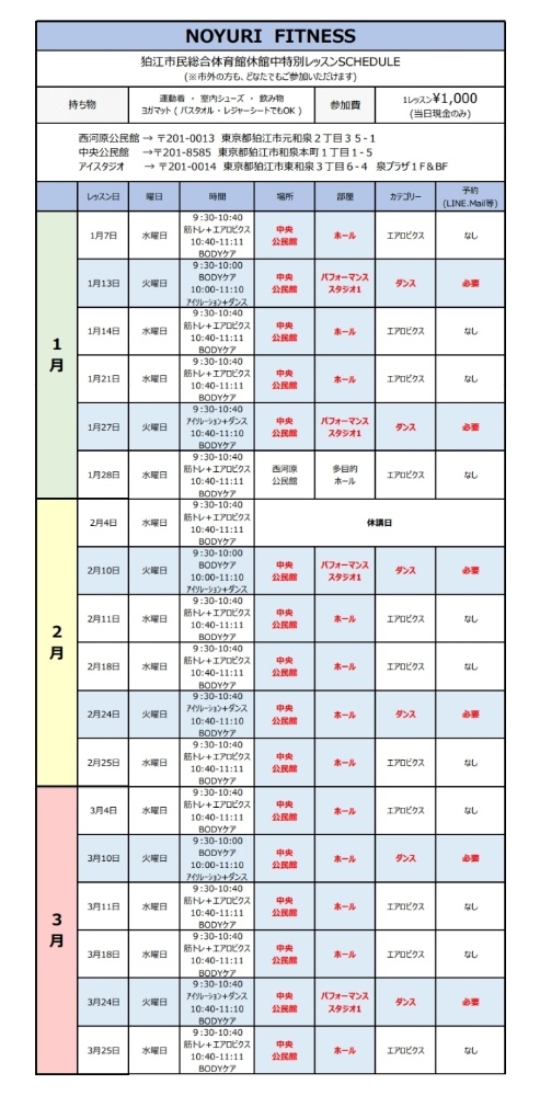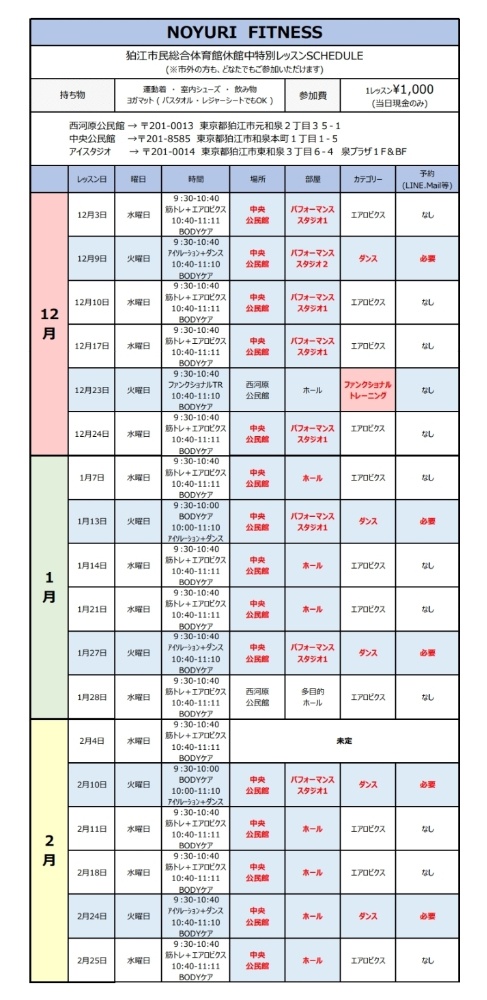 【狛江市民総合体育館(火曜日クラス)】