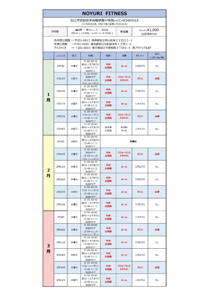 ※二週連続同じ曲(休館.休講.祝日がある場合は一週のみ・もしくは三週)
