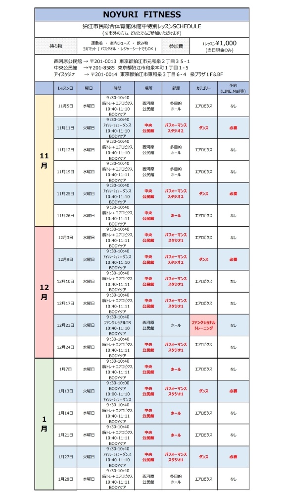 ※二週連続同じ曲(休館.休講.祝日がある場合は一週のみ・もしくは三週)
