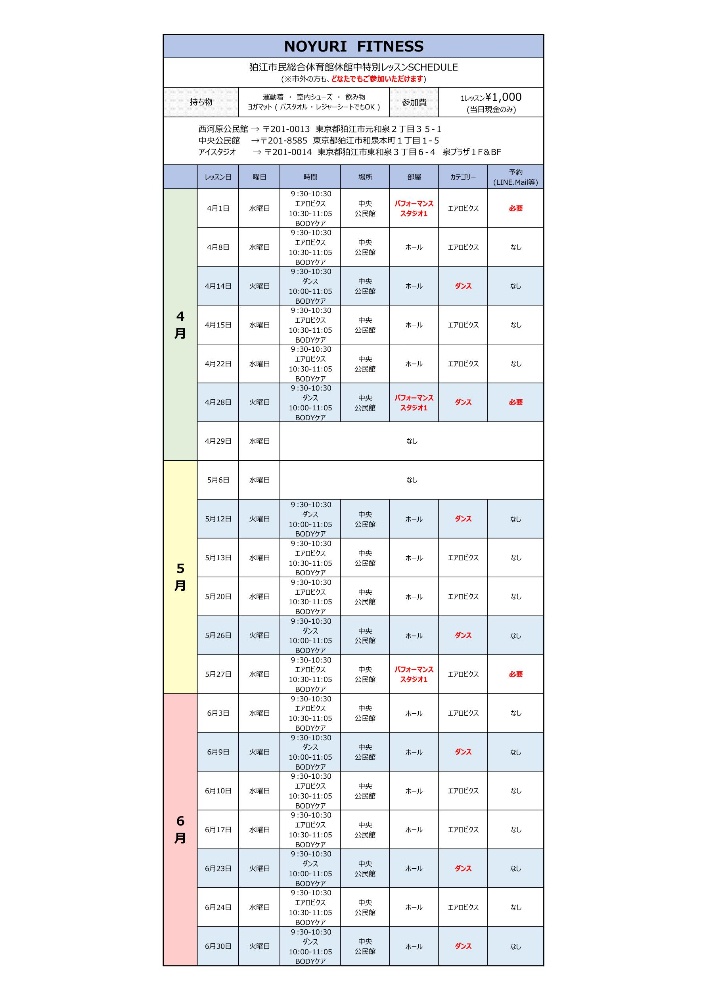 【狛江市民総合体育館(火曜日クラス)】